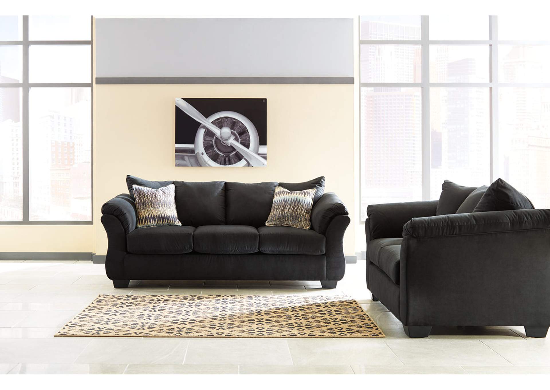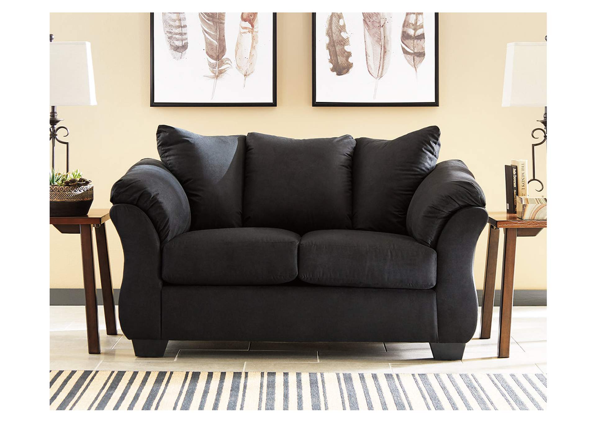 Talk about fine lines and great curves. That’s the beauty of the Darcy loveseat—made to suit your appreciation for clean, contemporary style. A striking flared frame, comfy pillow top armrests and an ultra-soft upholstery that holds up to everyday living complete this fashion statement.