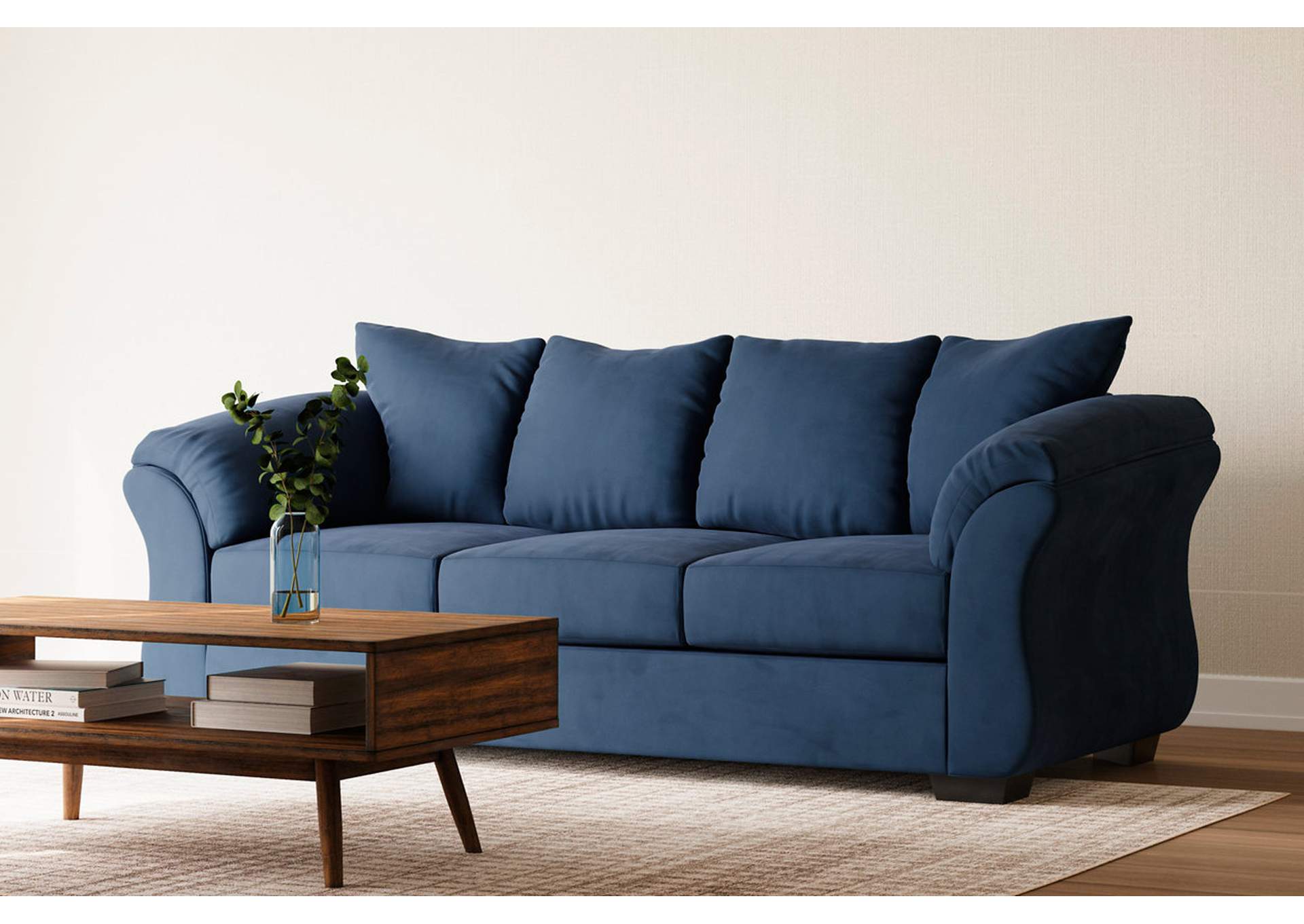 Talk about fine lines and great curves. That’s the beauty of the Darcy sofa—made to suit your appreciation for clean, contemporary style. A striking flared frame, comfy pillow top armrests and an ultra-soft upholstery that holds up to everyday living complete this fashion statement.