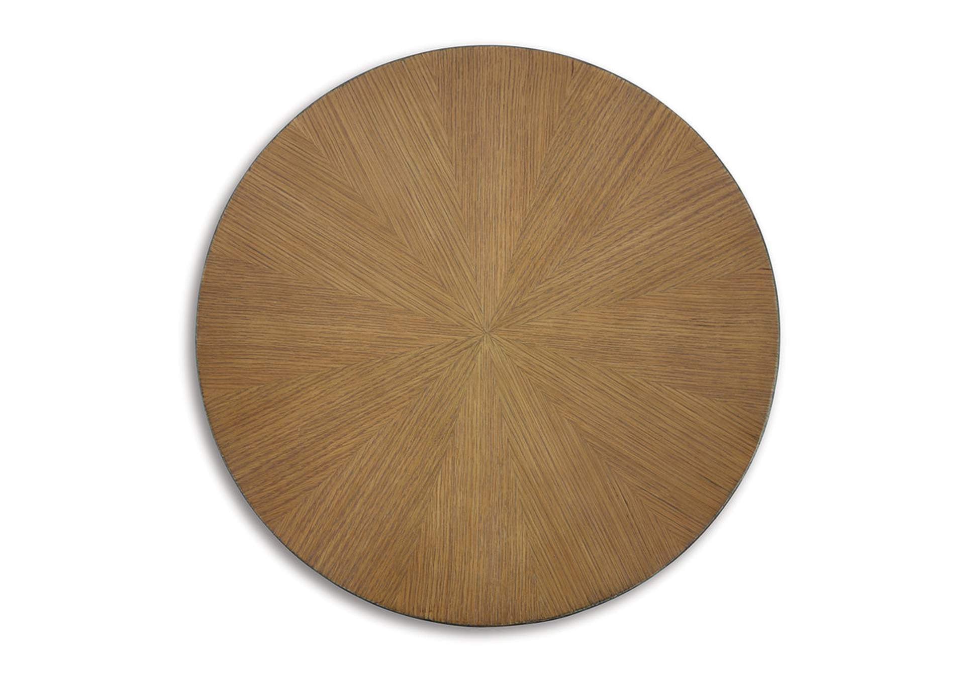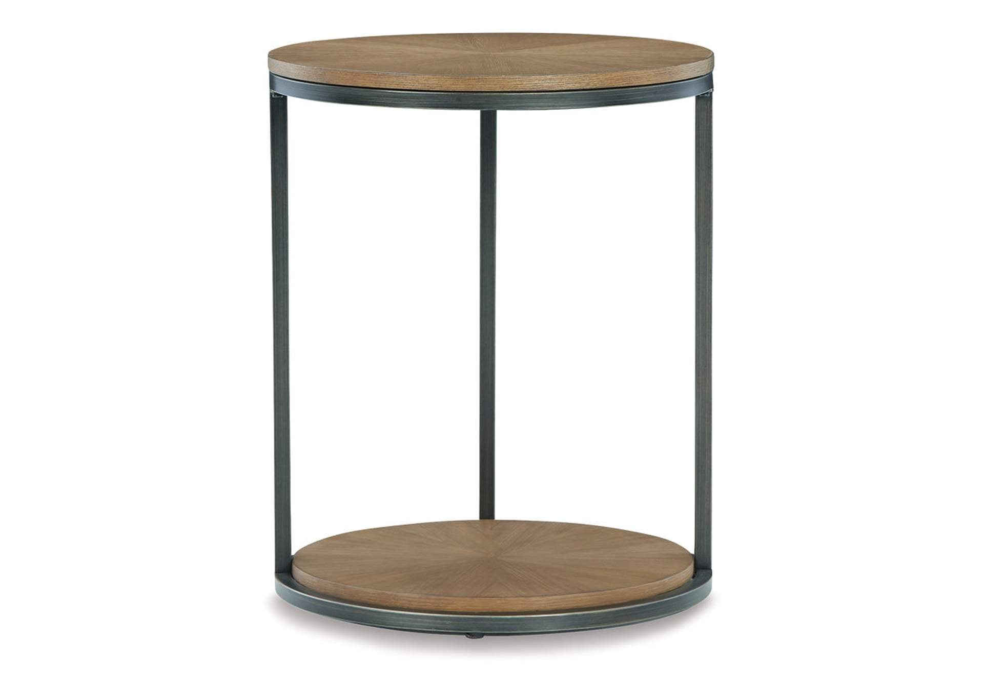 Beautiful to behold, the urban contemporary Fridley end table is loaded with high style and convenience. The oak veneer top is enhanced with a striking sunburst pattern, while its simple-yet-stylish tripod design allows it to fit nicely in the smallest spaces.