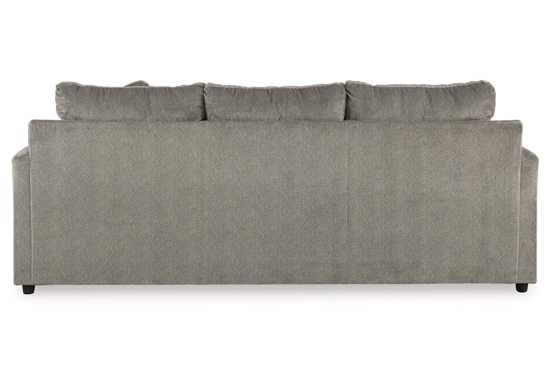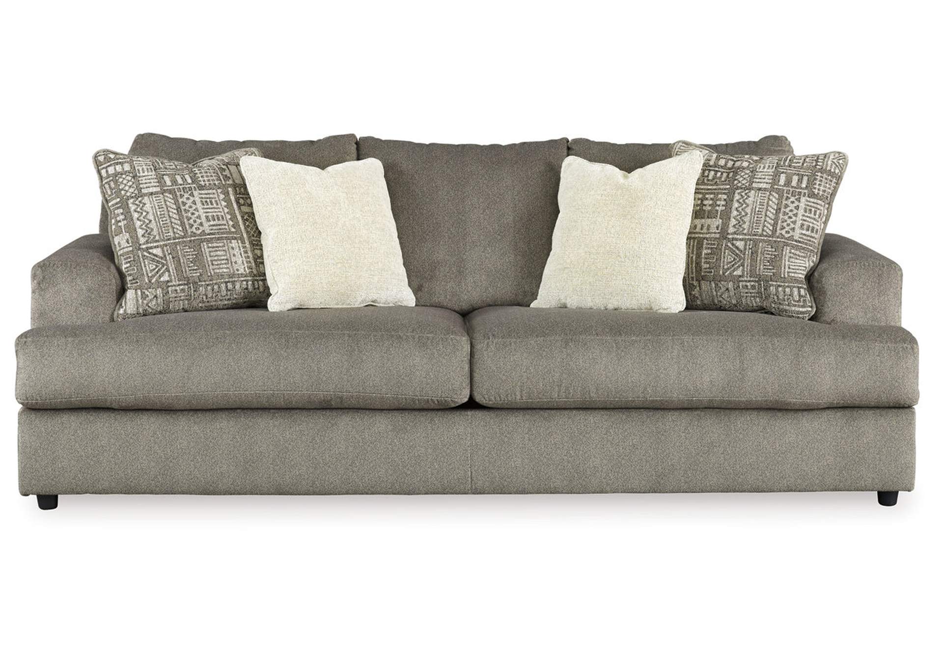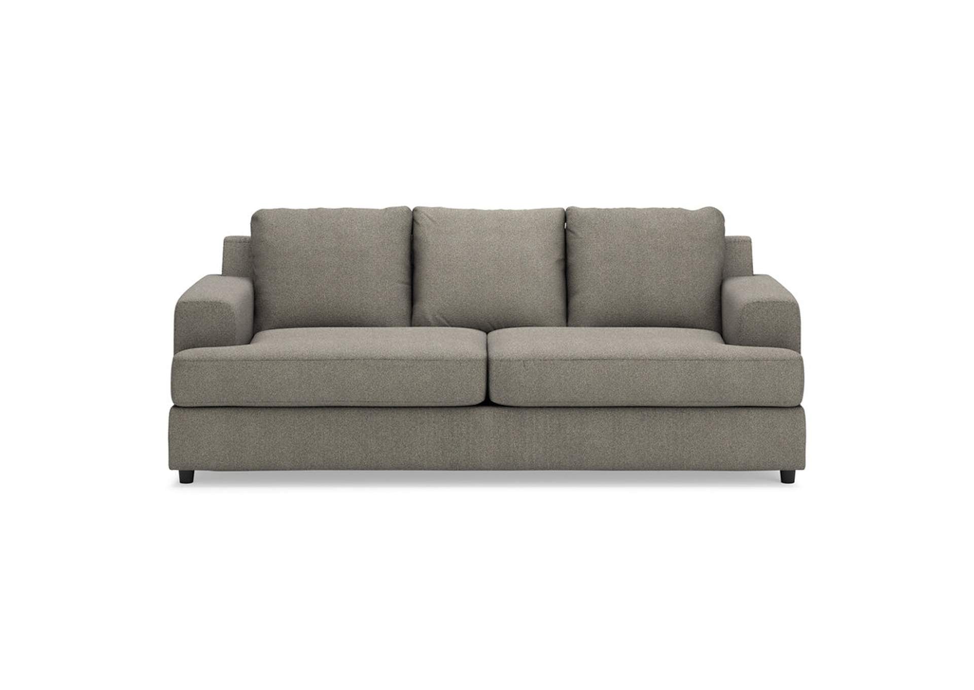 Flaunting a trendsetting silhouette, the Soletren sofa puts the contemporary in your contemporary home. Its “three over two” profile eliminates the center seat cushion, giving you elongated plushness and deep seating. And the microfiber fabric satisfies your need for a piece that feels as good as it looks. Soft jacquard chenille throw pillows add a splash of geometric pattern and color contrast.