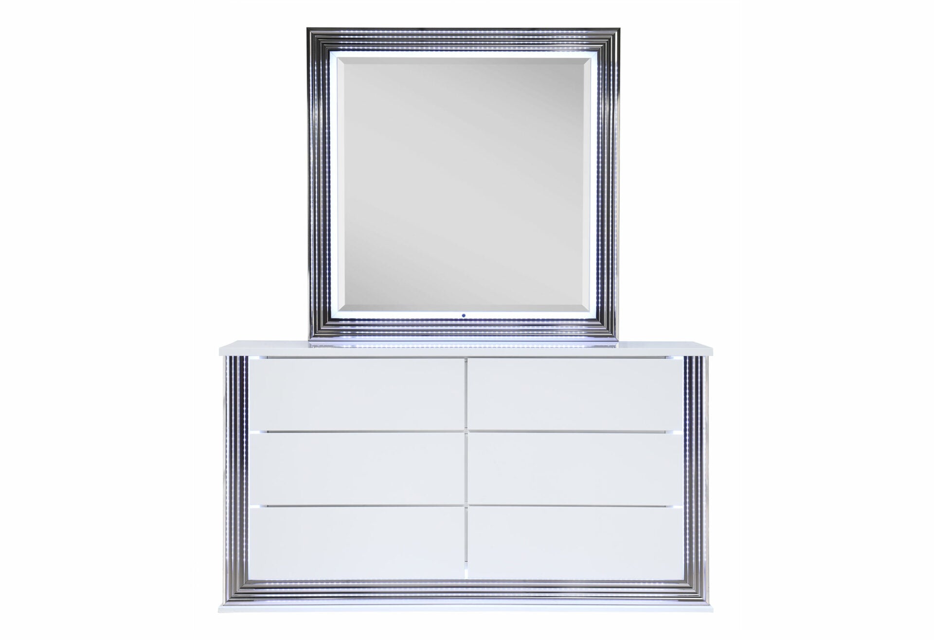 Introducing the Ylime Collection by Global Furniture USA – a stunning addition to any bedroom. Crafted with a sleek, deco modern design, this collection features rich chrome accents on all pieces and LED accent lighting. The real showstopper is the LED accents that add a touch of luxury and sophistication to the overall look. An available large matching vanity with stool makes this one of the most accommodating, complete solutions for your bedroom.